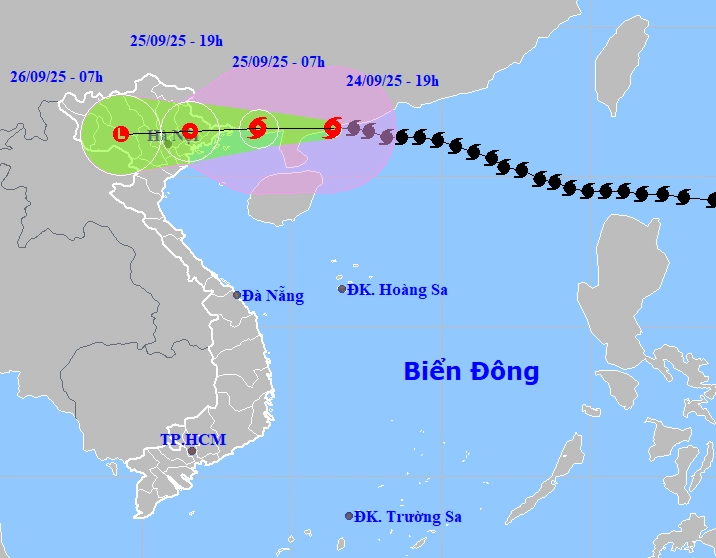 18h hôm nay, tâm bão Bualoi trên vùng biển Quảng Trị, sức gió tối đa 133 km/h, cấp 12, dự kiến rạng sáng mai đi chếch lên phía bắc và đổ bộ Quảng Trị - Thanh Hóa.